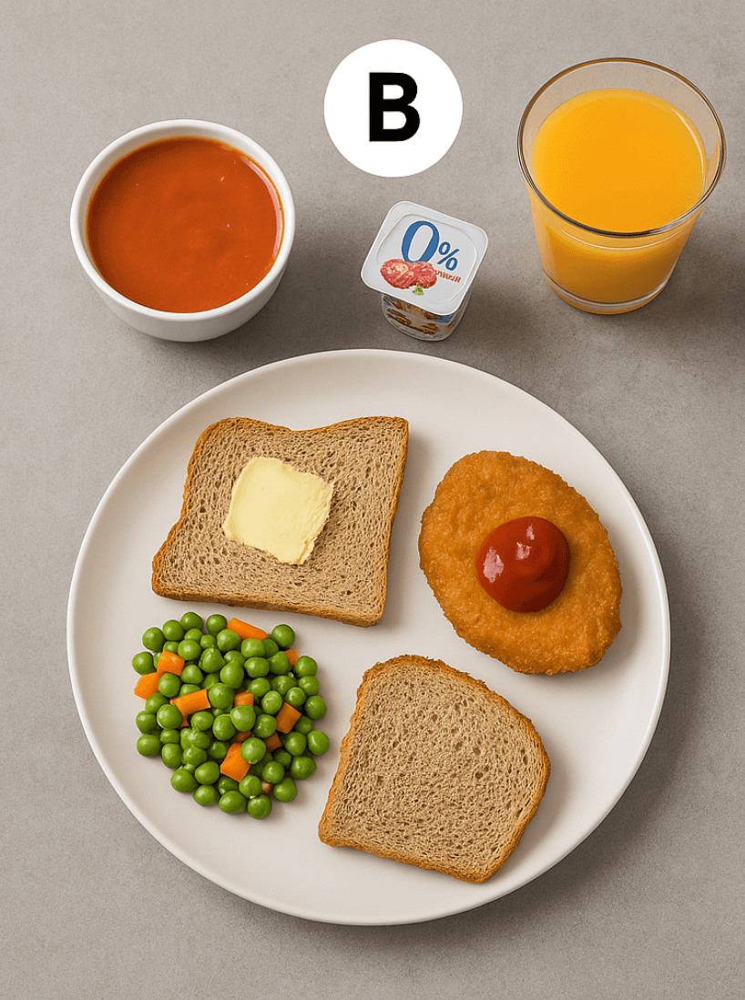 الطبق الصحي: هل اخترتم الطبق B؟ لستم الوحيدين فهذا ما يختاره 90% من الناس. إذ أنّ الكمية قليلة وخالية من الدهون، ويبدو الطبق خفيفاً وصحيّاً على الأرجح، أليس كذلك؟