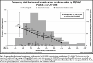 - سرطان البنكرياس: تراجع خطر الإصابة بالسرطان بنسبة 30% لدى أولئك الذين يسجّلون معدلاً يتجاوز 20ng/ml مقارنة مع أولئك الذين لديهم معدلاً أقل.